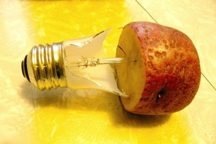 Выкрутить разбитую лампочку и не порезать руки, поможет обычная картофелина. Разрежьте корнеплод напополам, убедитесь, что свет выключен, наденьте картофелину на патрон и аккуратно выкручивайте.