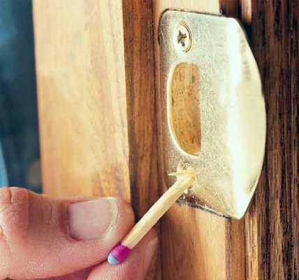 Если винт никак не схватывается, заполните отверстие стальным волокном от губки для мытья посуды или вставьте спичку. Спешим вас предупредить, что в такой ситуации ни в коем случае не стоит использовать клей, иначе потом винт вы уже не сможете выкрутить.