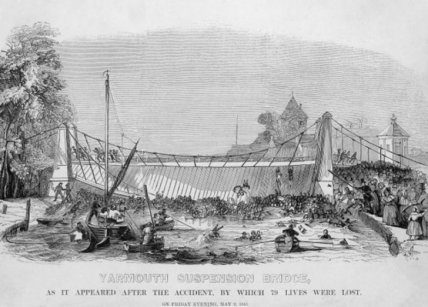 2 мая 1845 года посмотреть на представление клоуна, плывущего по реке в бочке, которую тянул гусь, пришли сотни детей и их родителей. Все они собрались на мосту Ярмут. Как только толпа людей резко переместилась на другую сторону моста, чтобы посмотреть, как клоун проплывает под ним, конструкция не выдержала, цепи порвались, и платформа перевернулась.
