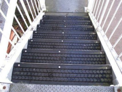 Чтобы лестница на улицу зимой оставалась безопасной, ее ступени можно декорировать кусками резины, вырезанными из ненужных автомобильных покрышек.