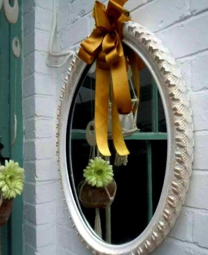 Из велосипедной шины, аккуратно покрашенной в белый цвет, получится весьма необычная рама для зеркала в ванной или прихожей.