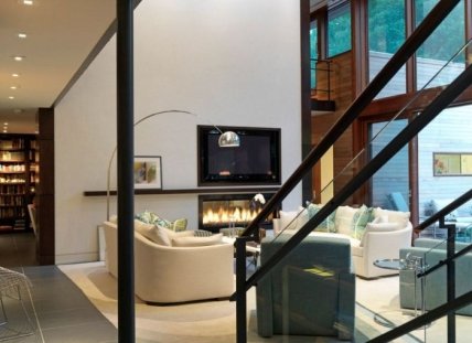 Полка, размещенная в зоне для просмотра телевизора, представляет собой немаловажный элемент в интерьере.