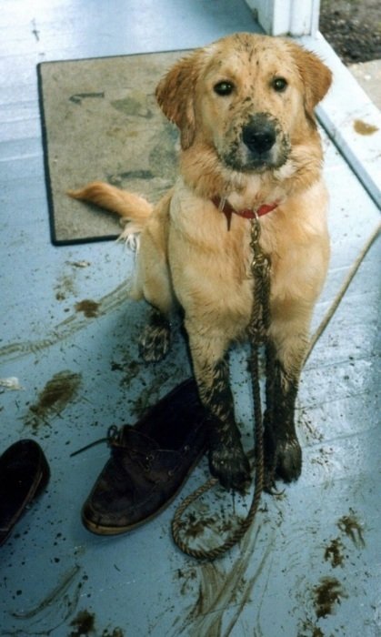 Чтобы вместе с собакой в квартиру не входили пыль и грязь, надевайте на нее непромокаемый комбинезон. В этом случае все равно придется мыть лапы, но зато шерсть останется чистой. Кстати, ветеринары не рекомендуют часто купать животных, иначе появляется риска нарушения естественного рН: перестает блестеть шесть, пересыхает кожа, появляется неприятный запах и перхоть.