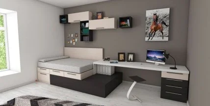 Если в вашем распоряжении всего одна комната, ее, несомненно, придется делить на зоны. Сейчас для этого есть масса ресурсов: раздвижные системы, мобильные перегородки, ширмы, стеллажи и шторы. По мнению дизайнеров, самыми эргономичными и функциональными являются стеллажи. Кроме массивных конструкций можно использовать разные цвета отделки и специальное освещение. Также не забывайте про модульную мебель. С ее помощью зоны можно сделать трансформируемыми и более функциональными.