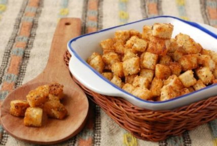 Зачерствевший хлеб можно использовать для изготовления вкуснейших домашних сухариков. Просто нарежьте хлеб кубиками и просушите в духовке, можно также использовать специи по вкусу. Домашние сухарики станут прекрасной добавкой к первым блюдам и салатам.