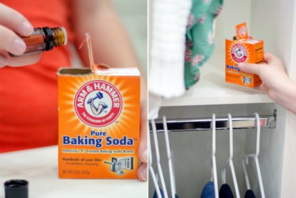Поставьте в шкафу, где хранится ваша сезонная одежда, емкость с пищевой содой. Это позволит предотвратить появление запаха затхлости. Ну, а если капнуть на соду несколько капель любимого эфирного масла, вещи обретут приятный ненавязчивый аромат.