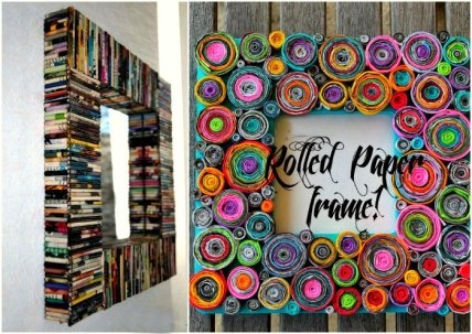Скрученные в трубочки страницы глянцевых журналов и каталогов можно использовать для создания и декора рамок для фотографий и зеркал. Новые яркие рамки прекрасно подойдут для размещения детских снимков и декора стен.