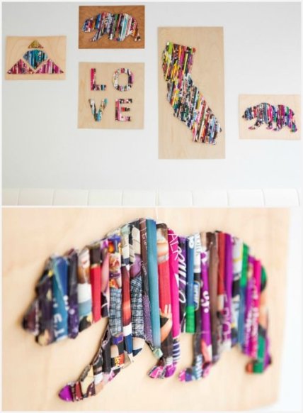 Творческий подход и немного усердия позволят превратить страницы старых журналов в необычные настенные панно.