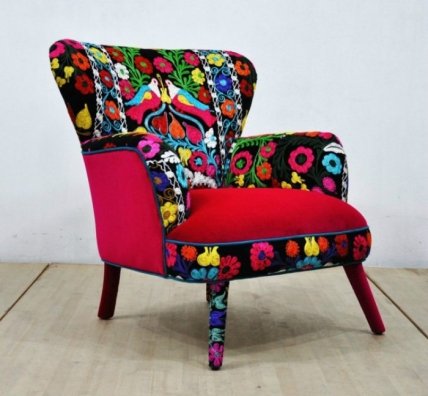 Обивка из цветастого флока позволит вдохнуть новую жизнь и полностью преобразить старое кресло.