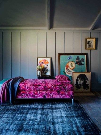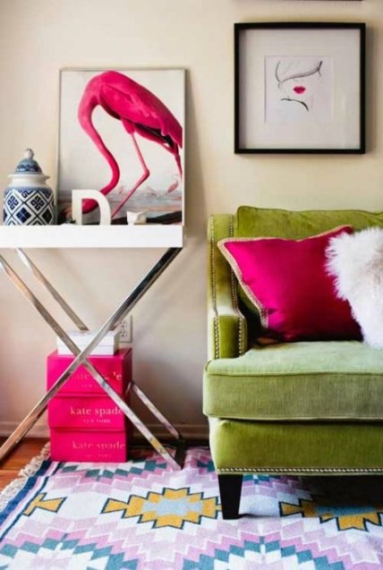 Потрясающая ярко-розовая тахта станет настоящей изюминкой комнаты.