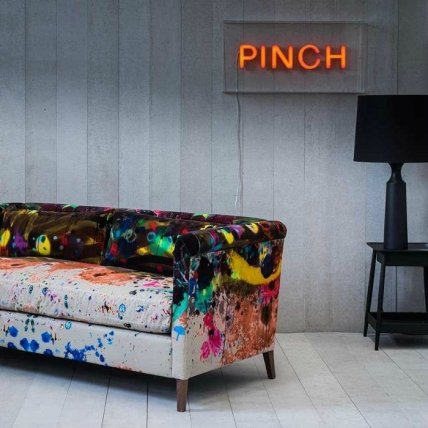 Яркая тканевая обивка дивана.