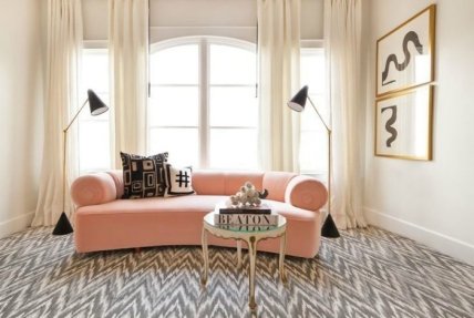 Очаровательная софа нежного персикового цвета — прекрасное решение для светлой комнаты.