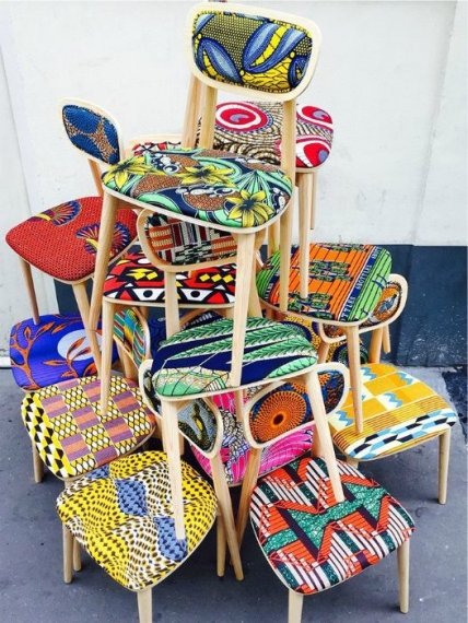 Остатки плотной яркой ткани прекрасно подойдут для перетяжки старых стульев.