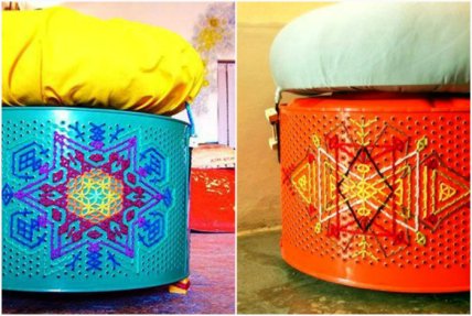 Планируете заменить старую стиральную машинку на новую? Тогда вам следует знать, что из старых барабанов получаются восхитительные дизайнерские пуфики. Для их создания вам понадобиться лишь баллон с яркой краской, поролон и ткань.
