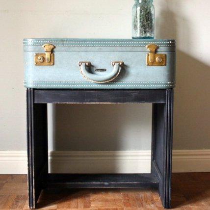 Стильная тумба, главной особенностью которой стал старый винтажный чемодан - прекрасный пример альтернативного использования ненужных вещей.