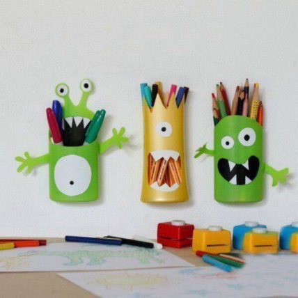Пластиковые бутылочки от шампуней и гелей для душа можно использовать для создания ярких органайзеров для канцелярских принадлежностей.