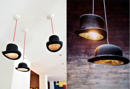 Вместо того, чтобы просто выбросить старомодные шляпы, используйте их для создания эффектных плафонов для светильников. Необычные люстры станут не только функциональными деталями пространства, но и его украшениями.