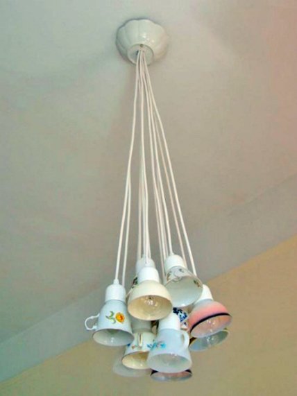 Если у вас скопилось приличное количество чашек со сколами и трещинами, не спешите отправлять их на помойку. Подобную посуду можно использовать для создания необычного и очень милого светильника, который станет эффектной изюминкой жилья и предметом зависти для гостей вашего дома.