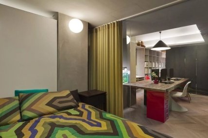 Штора может быть использована не только для оформления окна. Это еще и демократичный способ зонирования помещения.