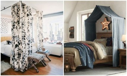 Тканевый балдахин — классический способ сделать спальное место уединенным и уютным. Балдахин может быть как полупрозрачным, так и изготовленным из плотной ткани.