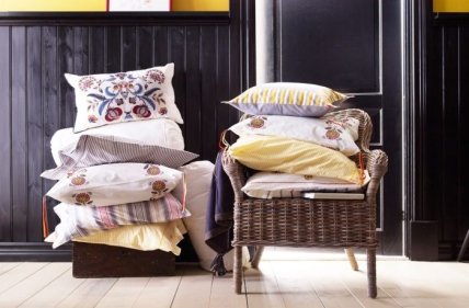 Декоративные подушки — простой способ украсить интерьер. Для того чтобы подушки составляли единую композицию, оденьте на них чехлы из гармонирующих тканей.