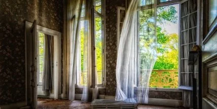 Отрезы ткани вместо штор.