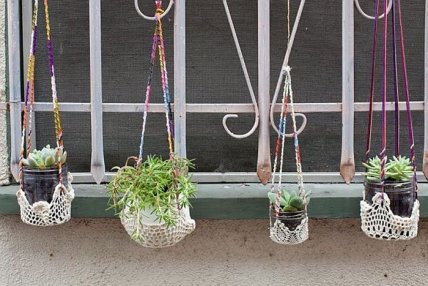 Не нужно ограничиваться использованием кружева только для декора внутренних помещений. По правде говоря, кружевные салфетки могут стать стильными и красивыми кашпо для цветов.