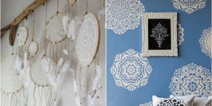 Если есть много кружевных салфеток, тогда ещё понадобится абажур сферической формы или надувной мяч, чтобы создать свой собственный диско-шар. Такой прием отлично подойдет для декора детской комнаты, возможно, столовой, или где хочется создать необычную загадочную атмосферу, как, например, это сделала дизайнер Эмми Лиззи.