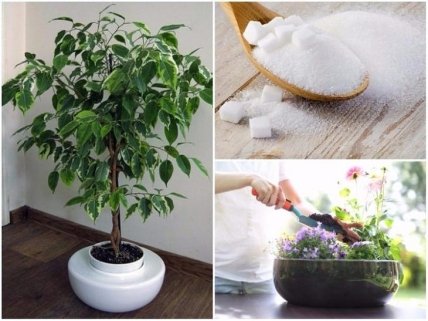 Сахарную подкормку очень любят всевозможные фикусы. Сахар является питательной средой для гнили, бактерий и плесени, поэтому следует воздержаться от слишком частого применения этого метода.