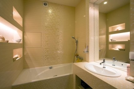 Используйте зеркала – они зрительно могут увеличить площадь небольшой ванной комнаты вдвое. При этом не вешайте зеркала друг напротив друга, чтобы не создавать эффект "тоннеля" - лучше, если зеркальной будет одна стенка, либо две стены, сходящиеся под прямым углом.