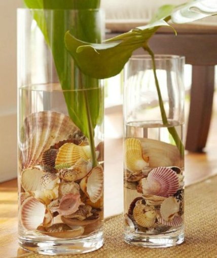 Вазы, наполненные ракушками.
