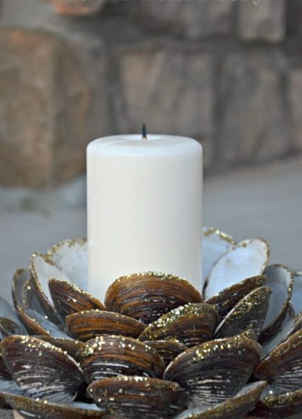 Раковины от устриц и мидий можно использовать для создания необычных подсвечников, которые в свою очередь станут прекрасными украшениями интерьера.