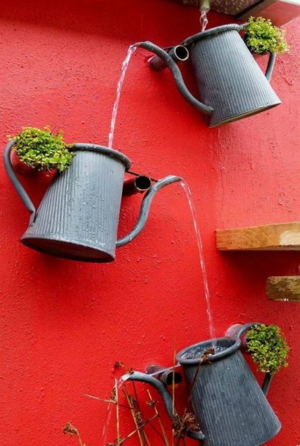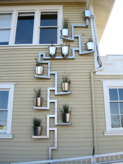 Необычная водосточная труба с цветочными горшками позволит с пользой использовать дождевую воду и станет настоящим украшением экстерьера.