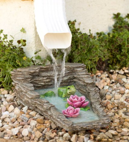 Мини пруд, сооруженный под водосточной трубой, будет наполняться водой после каждого дождя и радовать глаз своим очаровательным внешним видом.