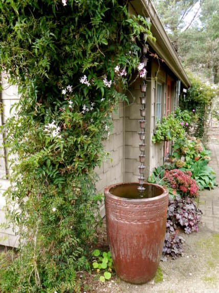 Дождевые цепочки для сбора воды, которые подвешиваются к углам крыши, являются гораздо более привлекательной альтернативой привычной водосточной трубе.