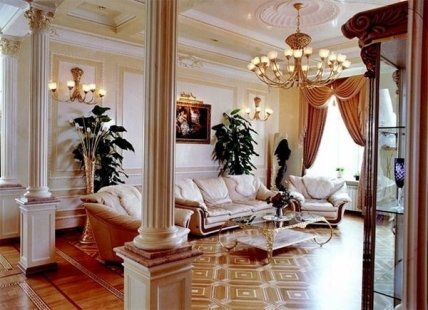 Чтобы античный стиль действительно выглядел масштабно и привлекательно, применять его следует в больших комнатах.