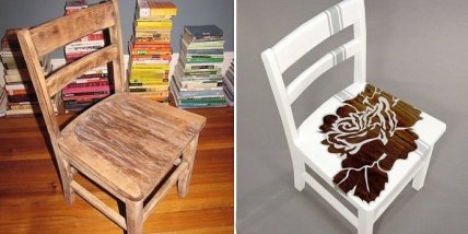 Для того чтобы выбранный рисунок выглядел аккуратным, лучше наносить его при помощи трафарета. Его можно вырезать из плотного картона или тонкого пластика. Окрасьте выбранный предмет в светлый цвет. После высыхания краски нанесите рисунок по трафарету. Чтоб обновленная мебель выглядела эффектно, рекомендуем выбирать контрастные цвета краски.