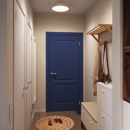 Обычно, прихожую рекомендуют оформлять в светлых тонах, чтобы она визуально казалась больше. Однако, если не продумать наличие акцентов, комната будет выглядеть скучно. Как насчет того, чтобы покрасить в яркий цвет входную дверь? В этом случае она станет главным элементом коридора, и вы не будете нуждаться в других декоративных элементах. Чтобы она не выглядела, как отдельная деталь обстановки, можете добавить в дизайн еще несколько вещиц такого же цвета. Например, если дверь голубая, купите зеркало в голубой раме или купите ключницу похожего оттенка.