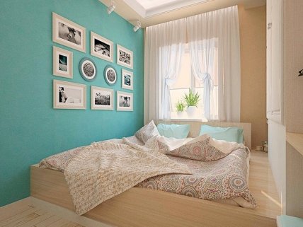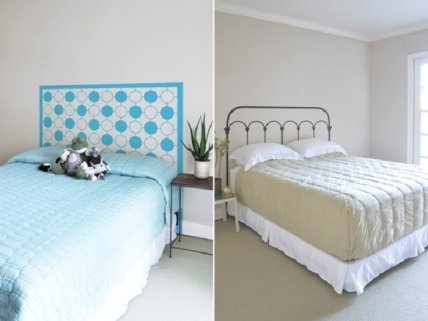 Еще один оригинальный вариант украшения интерьера, но уже для спальни. Если ваша кровать не имеет изголовья, нарисуйте его. Не обязательно обладать талантами художника, чтобы сделать это. Достаточно просто покрасить часть стены за кроватью. В том случае, если изголовье есть, можно обойтись широкой контрастной полосой над ним. Таким образом вы сможете сделать комнату более оригинальной и выразительной. Не хотите вооружаться красками? Оббейте изголовье кровати фактурным материалом насыщенного цвета. Также будет смотреться очень стильно.