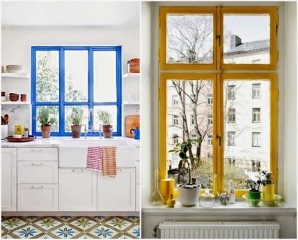 В случае с окнами также можно уйти от стандартного виденья. Согласитесь, что типичные белые рамы – это слишком скучно, обыденно и неинтересно. А вот если покрасить их в яркий цвет, то не только окно, но и целая комната моментально преобразится и заиграет новыми красками. Можно не ограничиваться рамами и покрасить также подоконник. Или выбрать что-то одно. Главное – не бояться экспериментировать и добавлять яркие элементы в повседневную жизнь.