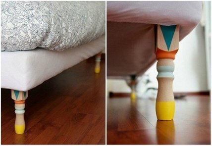 Мебель на ножках является фаворитом многим дизайнеров, так как не перегружает пространство, делает его легче и свободнее. Если вы являетесь обладателем таких предметов интерьера, например, кровати или стола, воспользуйтесь моментом и внесите в них изюминку. Просто возьмите кисточку, яркую краску и покрасьте ножки. Такие детали несомненно будут привлекать внимание, но при этом вы не рискуете перегрузить интерьер цветом. Зато комната сразу станет веселее.
