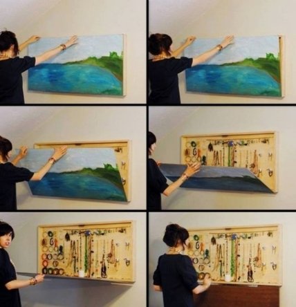 Украсьте свою стену обыкновенной картиной, но внутри картины можно хранить разные драгоценности.