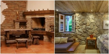 Сделав одну стенку из дикого декоративного камня, комната станет роскошнее.