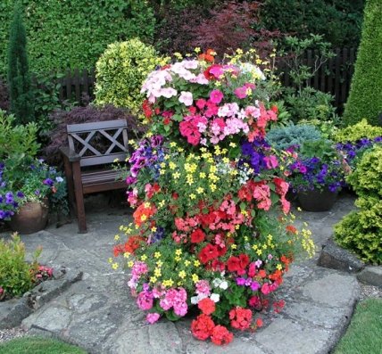 В дальнейшем пирамиду можно покрасить под цвет ландшафта или в тон других садовых сооружений. Вокруг готовой конструкции необходимо высадить любое любимое вьющееся растение, например, душистый горошек. Также для декора можно использовать разнообразные однолетники.