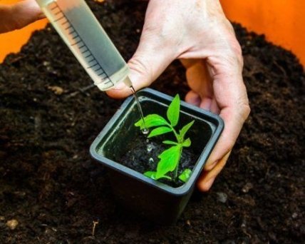 Для приготовления препарата растворите 1 ч.л. нашатырного спирта в 10 л воды, хорошо перемешайте и аккуратно полейте сеянцы под корень.