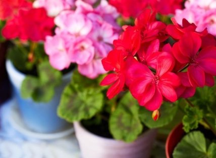 Если в вашей спальне подоконник узкий, можно поставить несколько небольших красивых горшочков с геранями — они прекрасно впишутся в ваш интерьер.