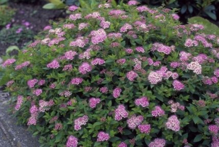 Для создания живых изгородей, в одиночных и групповых посадках широко используется спирея японская. В зависимости от сорта, она бывает низкорослой (20-30 см) и более высокой – до 1,3 м. Кустарник цветет практически все лето, чем привлекает многих садоводов. Он неприхотлив и легко приспосабливается к любым климатическим условиям.