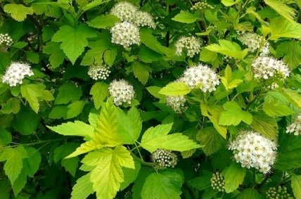 Декоративен в течение всего сезона и пузыреплодник – листопадный кустарник из семейства Розовые. Он неприхотлив и очень быстро разрастается. В начале лета растение украшают белые цветки, собранные в полушаровидные соцветия, а с осени и до середины зимы – необычные плоды-листовки.