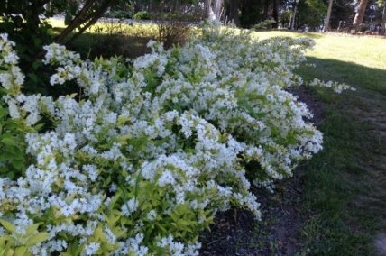 Один из самых неприхотливых кустарников – чубушник – растет быстро и хорошо переносит обрезку. За сильный аромат и белые цветы его еще называют садовым жасмином, хотя растения принадлежат к разным семействам. Чубушник – к Гортензиевым, а жасмин – к Маслиновым.