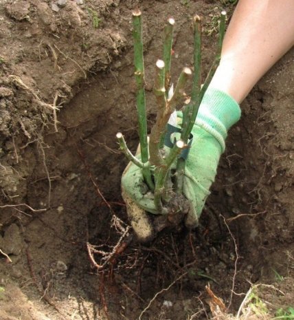 У некоторых растений, в частности у роз, перед посадкой нужно удалить слабые и поврежденные побеги, а оставшиеся (3-5 ветвей) подрезать так, чтобы на них осталось от 3 до 7 почек (в зависимости от вида).